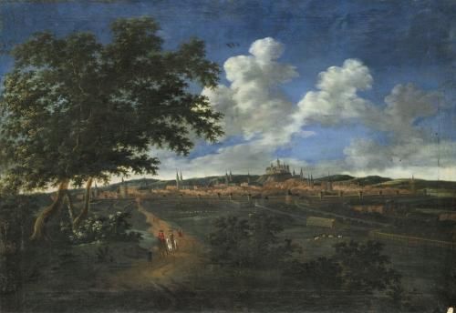 A PANORAMIC VIEW OF NUREMBURG WITH RIDERS IN THE FOREGROUND