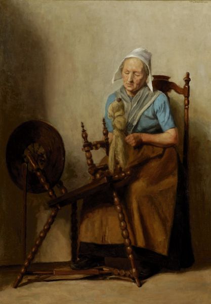 Vrouw aan een spinnewiel