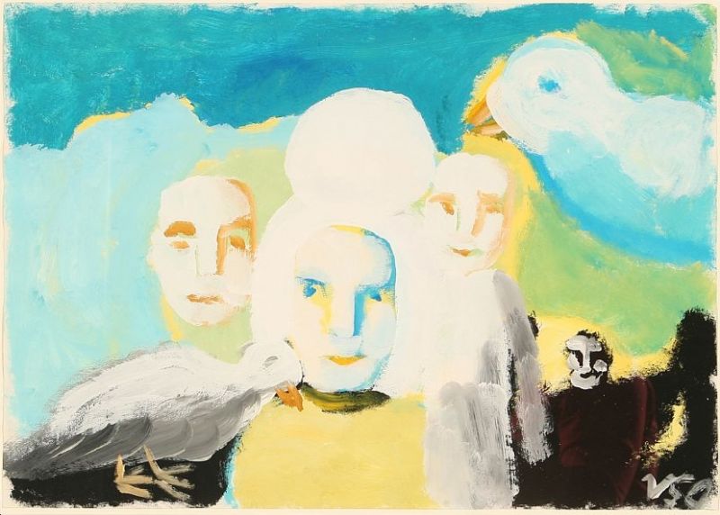 Composition with birds and figures.
