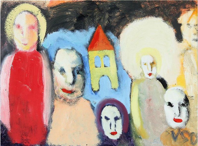 Composition with figures and a house.