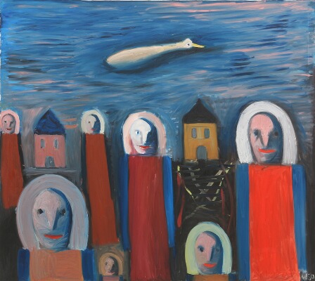 | Composition with figures, houses and bird | |