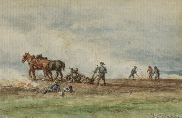 Polegende boeren op het veld