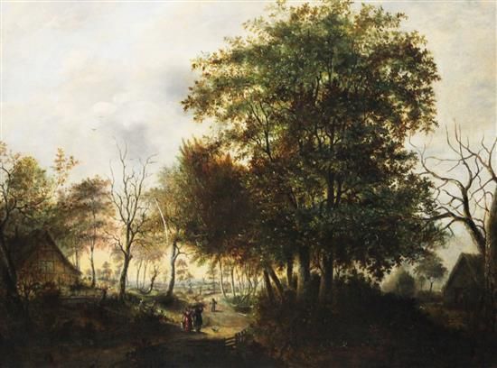 Wooded landscape with figures and house