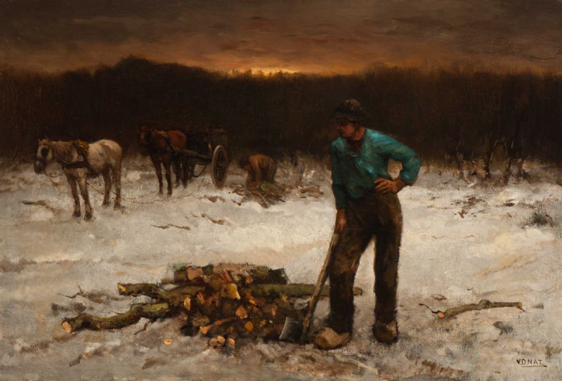 Houthakkers met paardenkar in een winterlandschap (1899)