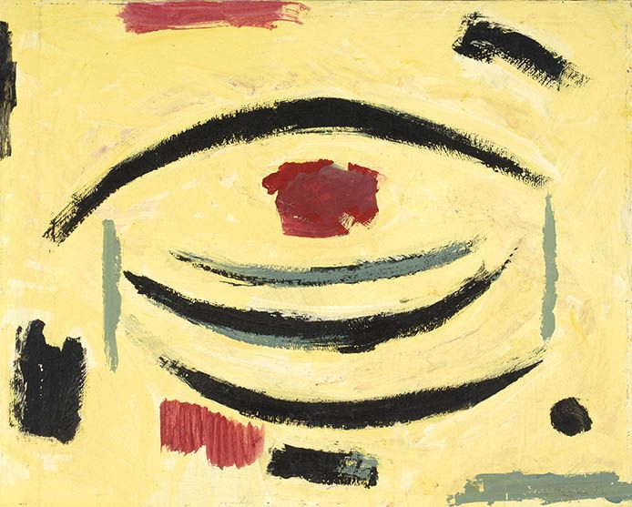 Compositie met geel, zwart en rood