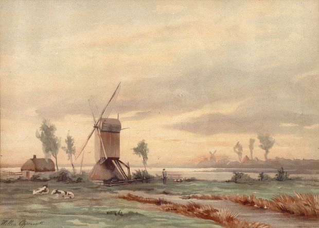 Windmill in a polder landscape