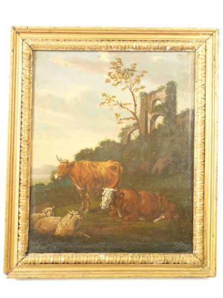 COWS AND SHEEP WITHIN GOTHIC LANDSCAPE