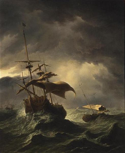 AN ENGLISH FRIGATE AND OTHER SHIPPING IN STORMY SEAS