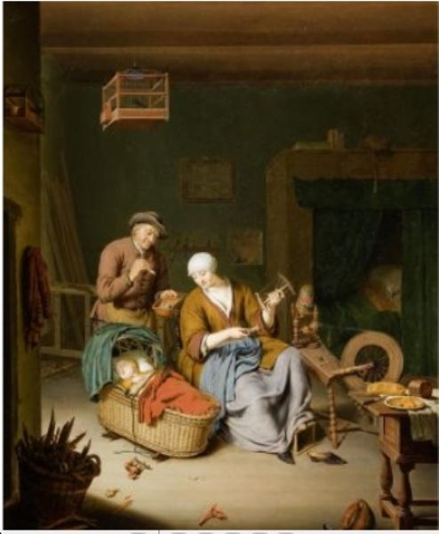 Interior with a family. 1718.