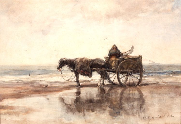 Schelpenvisser met paard en wagen