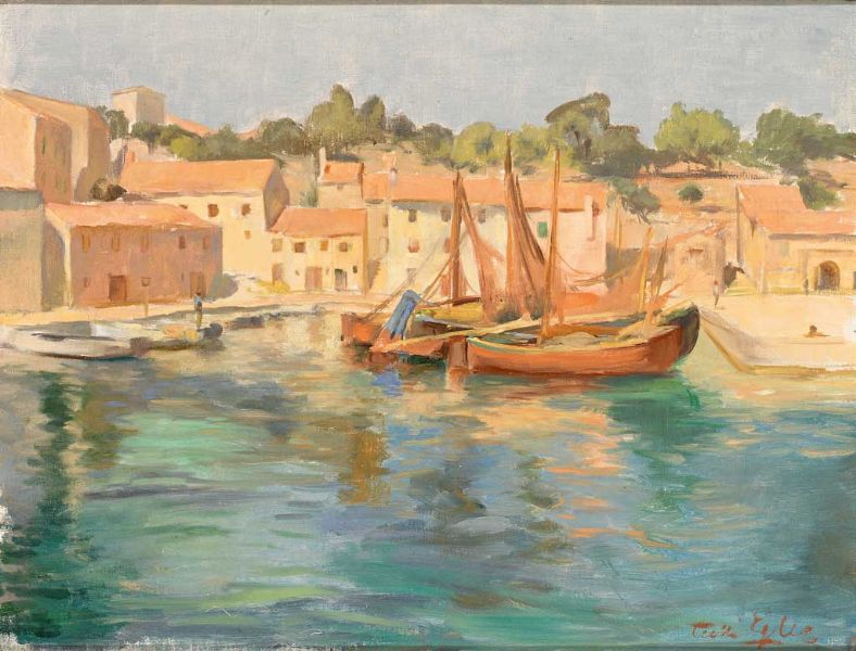 Südlicher Hafen mit Fischerbooten im sonnigen Licht