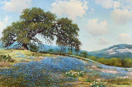 Old Oak on a Bluebonnet Hillside