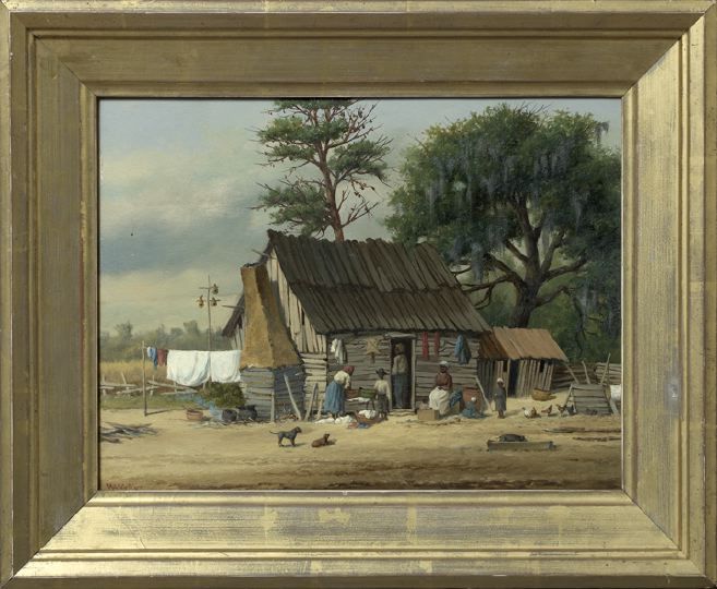 | Lively Cabin Scene View of a Family on Wash Day, Moss-Draped Live Oak Beyond | |