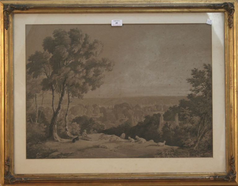 | 'Sandhurst' (Landscape with Shepherd, Sheepdog and Flock resting on a Hilltop) | |