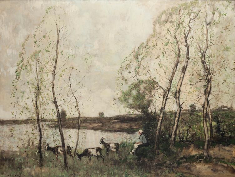 A RIVER LANDSCAPE WITH GOATHERD