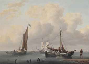 | A Dutch frigate saluting her departure from the anchorage, with fishermen on their boats in the foreground | |