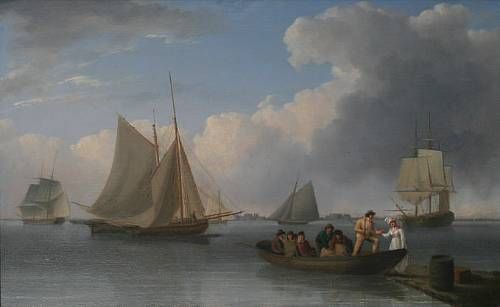 Alighting from the ferry on a calm day, a view of Harwich beyond