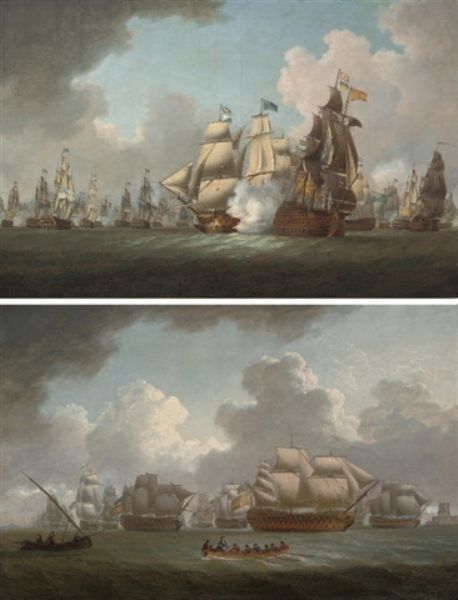 | H.M.S. Victory engaging the Spanish flagship at the battle of Cape St. Vincent, 14th 1797; and The Spanish prizes entering the T | |