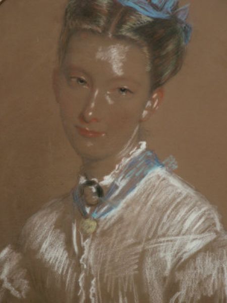 | Portrait of a Lady, wearing a white dress and with a red shawl draped over her right arm | |