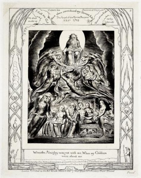 | Illustrations of the Book of Job: The title page and plate two 'When the Almighty was yet with me' | |