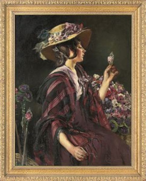 | Portrait of the character Eliza Doolittle from Pygmalion, seated half-length, a flower in her left hand | |