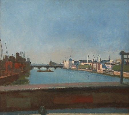 Thames Docks with Post Office Tower and St Paul's Cathedral in the distance