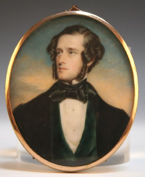 | Oval Miniature Head and Shoulders Portrait of a Gentleman wearing a Dark Green Tied Bow Cravat | |