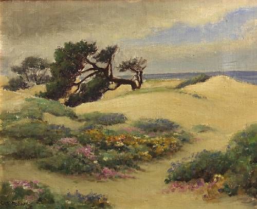 Sand dunes with cypress and flowers