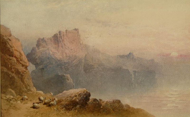 PLYMOUTH SCENE ON THE DEVON COAST, WITH SHEEP, AT SUNSET
