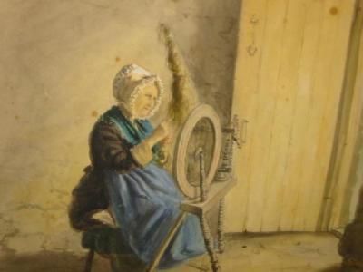 Woman Spinning at a Cottage Door