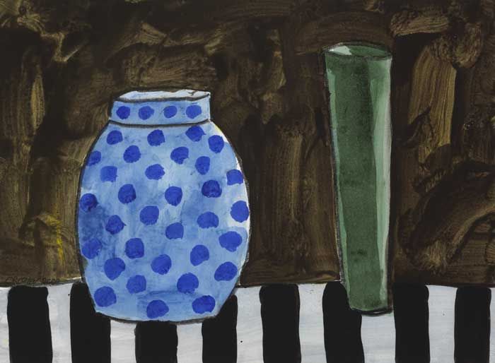 | STILL LIFE WITH BLUE POLKA DOT VASE AND GREEN FLUTE VASE | |