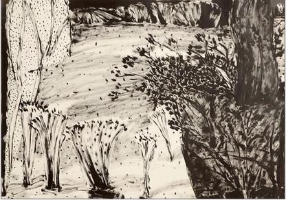 Ink crayon and wash on paper