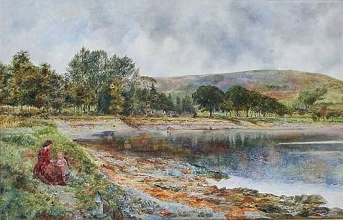 Port Bannatyne, Isle of Bute, with mother and child seated by the shore