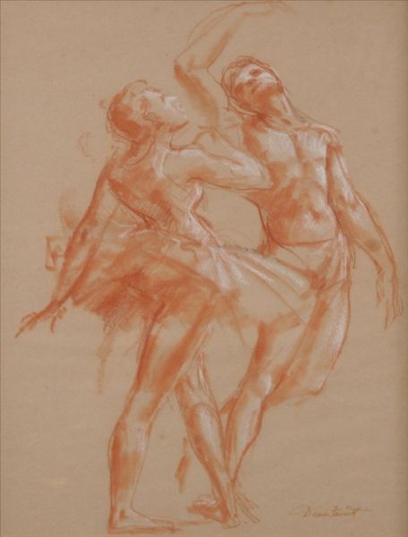 Sepia and white chalk on paper