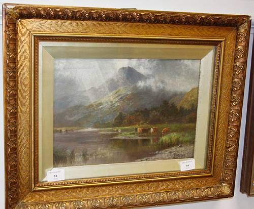 Cattle watering in a Highland landscape