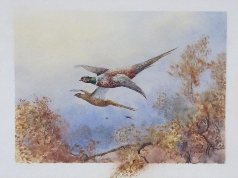 PHEASANTS IN FLIGHT