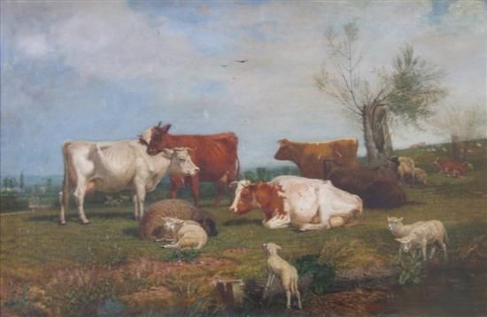 Cattle and sheep in a meadow