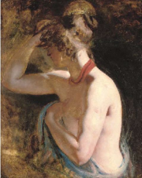 | Study of a female nude, half-length, draped in a blue wrap with a red scarf around her neck | |