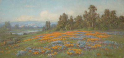 California Landscape with Poppies and Lupine