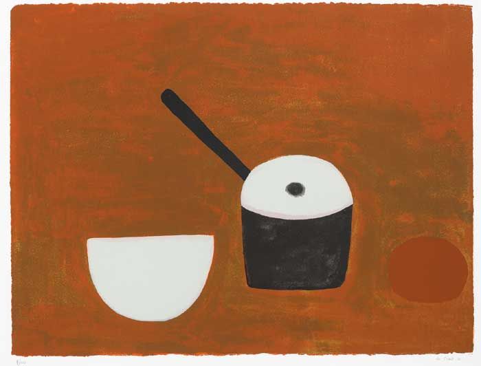 WHITE BOWL, BLACK PAN ON BROWN, 1970