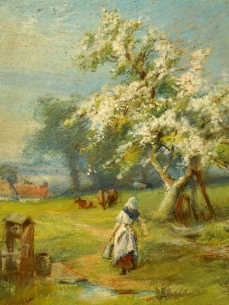 A milkmaid in a landscape