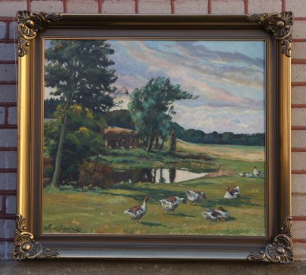 gäss i sommarlandskap