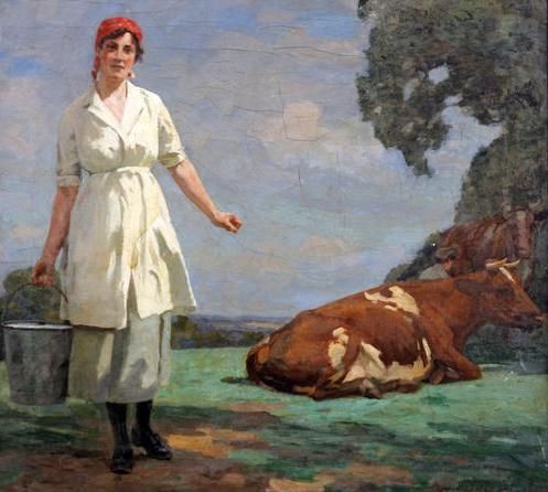 Feeding the sheep, together with another, fetching the milk