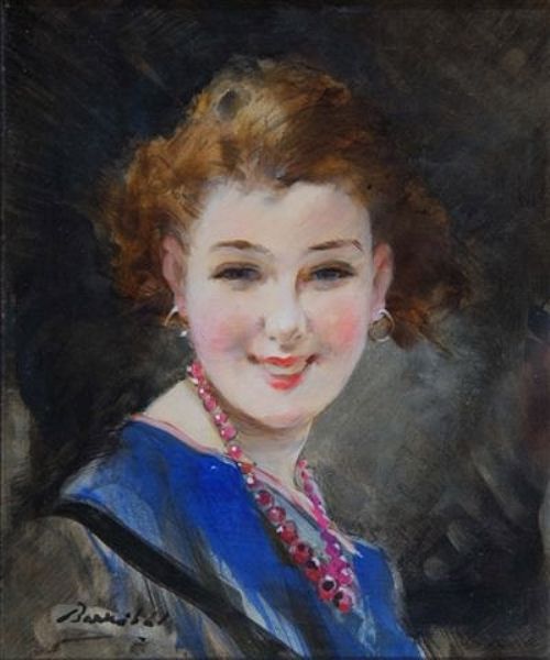 Head and shoulders portrait of a young lady wearing a coral necklace and blue dress