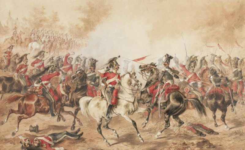 A battle between the 3rd Dragoon Guards and Russian Lancers (Crimean War)