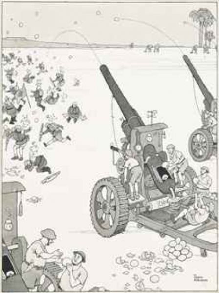 | 'A battery of our stale ostrich egg throwers for economising ammunition in desert warfare.' | |