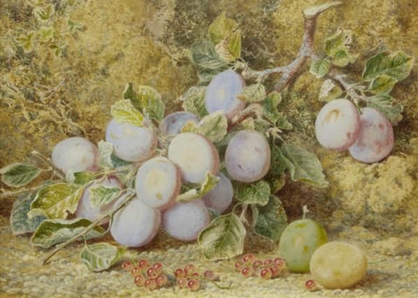 Still life of plums and redcurrants