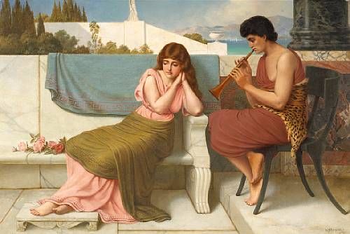 | A Roman maiden with a flute player with the Bay of Capri beyond | |