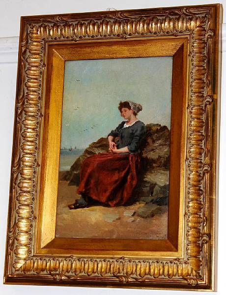 A fishergirl seated on the beach