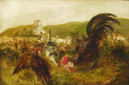 CHICKENS AND GEESE IN A FARMYARD